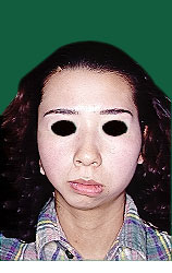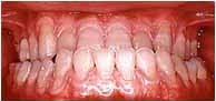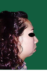 上アゴが狭く、中顔面(目から上アゴまで)が長い。 上アゴの横幅を広げ、中顔面を短くしました。 修正した上アゴに下アゴの位置をあわせています。