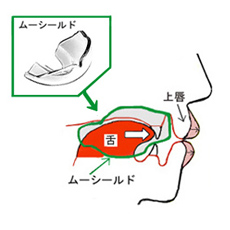 幼児のうちに、受け口を改善する方法として、『ムーシールド』を装着する治療法があります。
